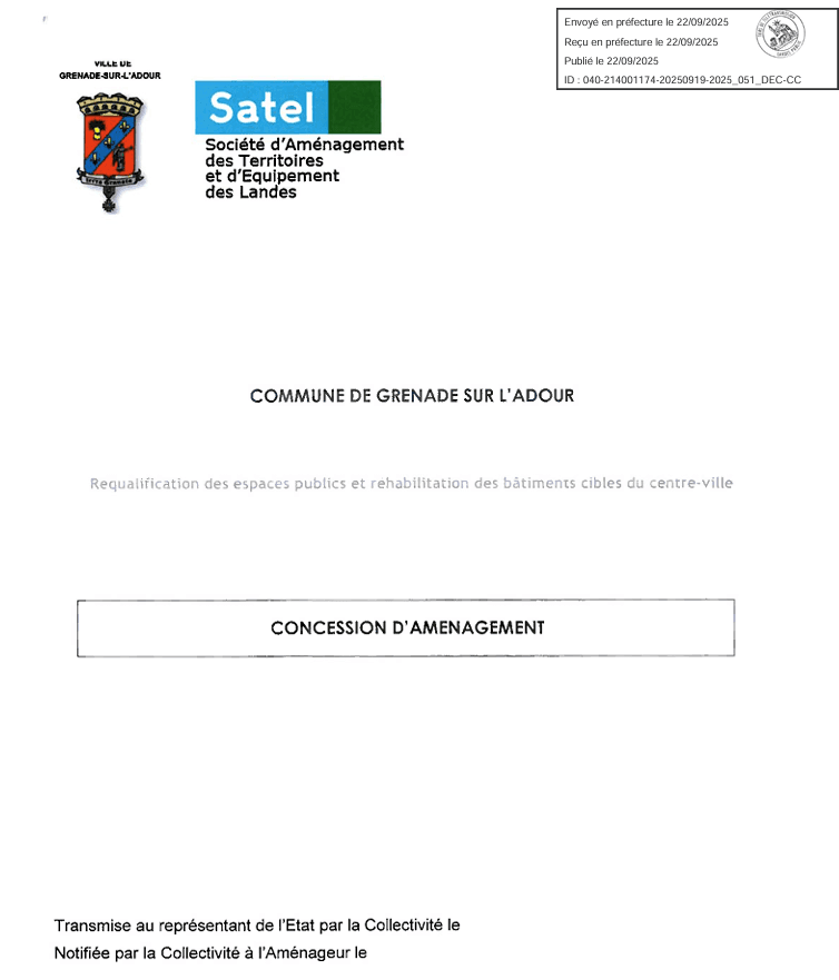 La commune de Grenade-sur-l’Adour a signé, le 19 septembre 2025, une concession d’aménagement de 3 millions d’euros, pour une durée de 15 ans, avec la SATEL.
